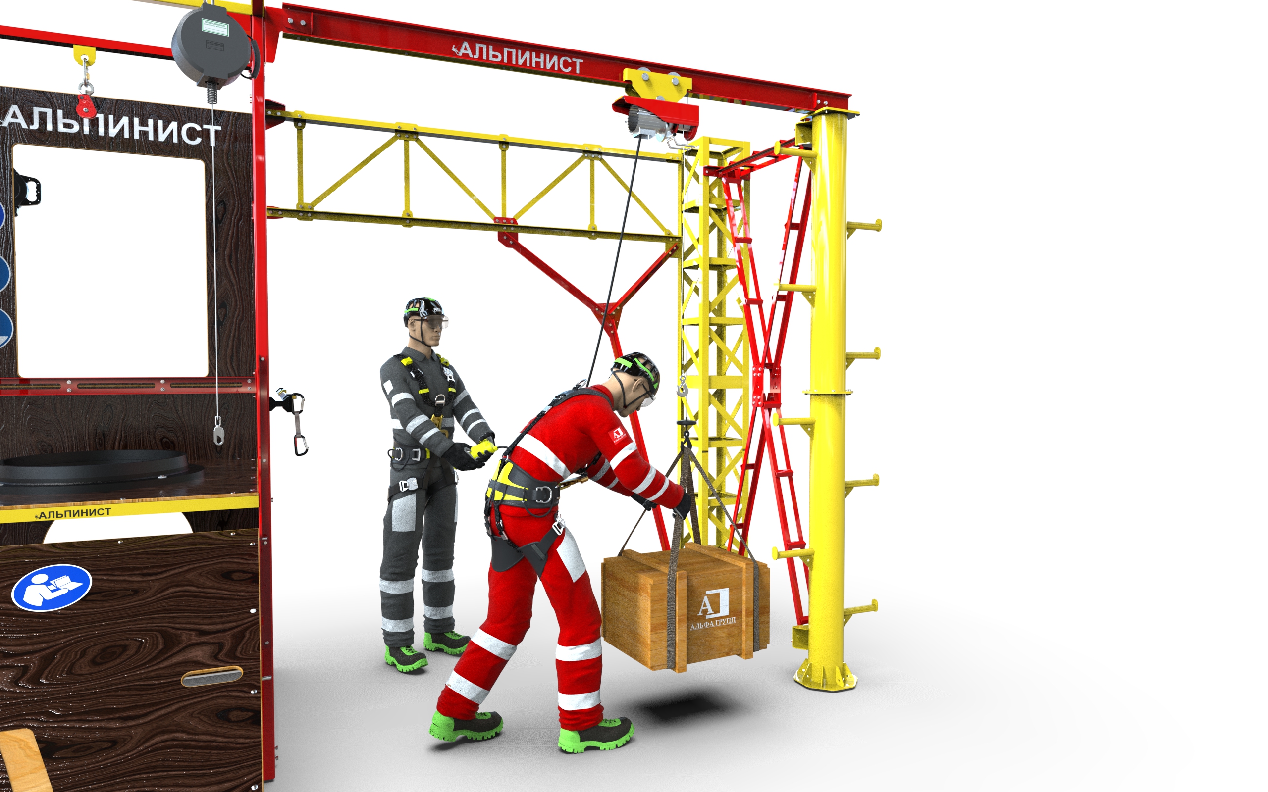 "АЛЬПИНИСТ-02-02" — это функциональный тренажер, созданный для отработки навыков безопасной работы на высоте. Он идеально подходит для учебных центров и классов, а благодаря мобильности может использоваться как переносной учебный комплекс, который легко транспортируется к месту обучения на предприятиях. Базовая конструкция тренажера отличается простотой сборки и при необходимости быстро демонтируется.